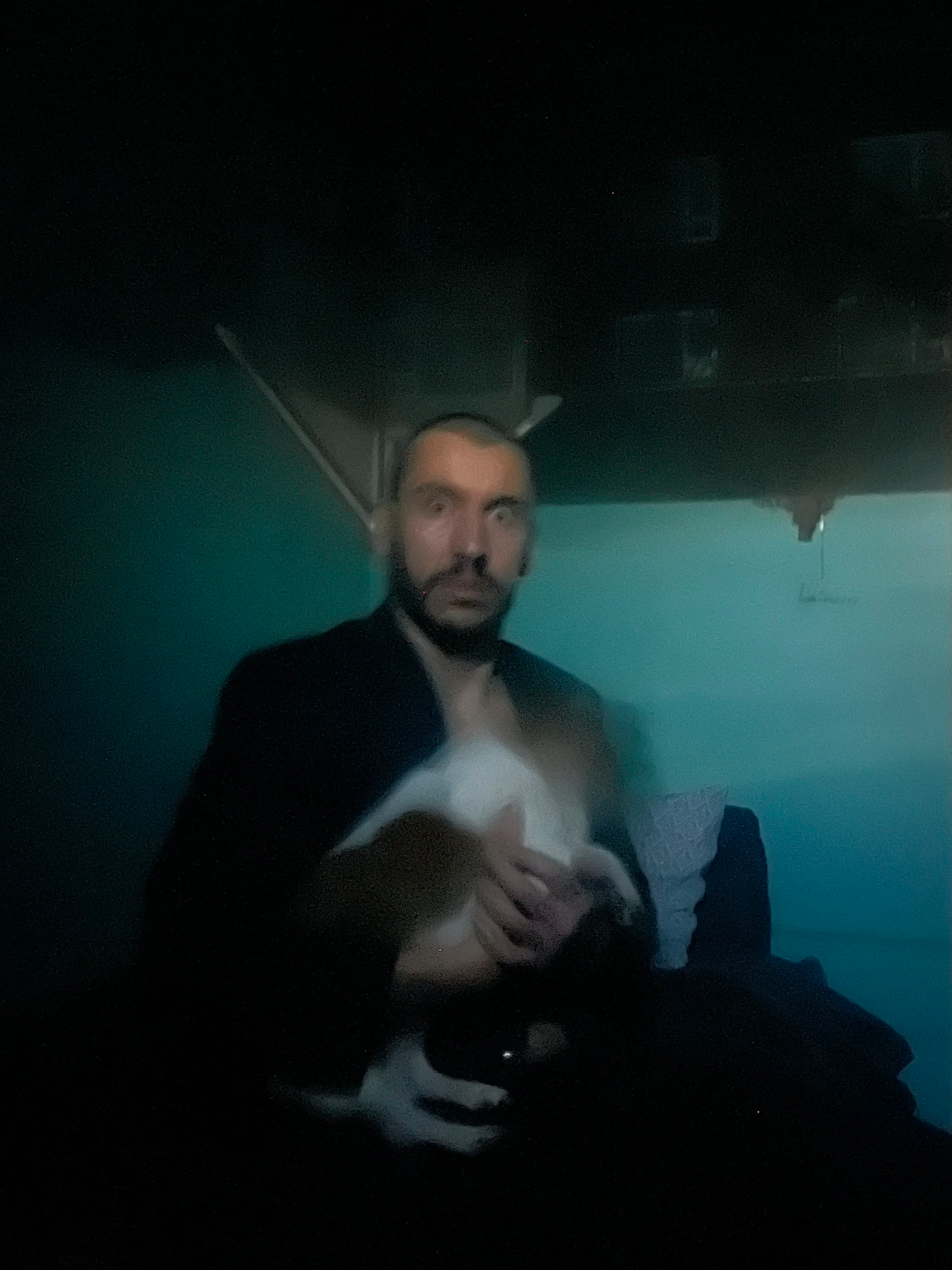 Self portrait with dog, 2026. digital photograph.
