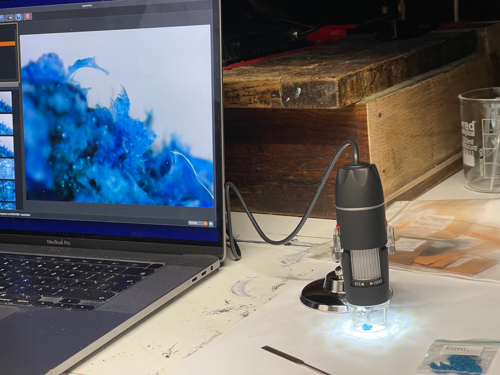 Started creating the first micrograph cyanotype works of my pigments made with materials found by myself, like clay from my garden, copper pipes from my next door neighbour and iron oxide from the exterior of my old incinerator.
