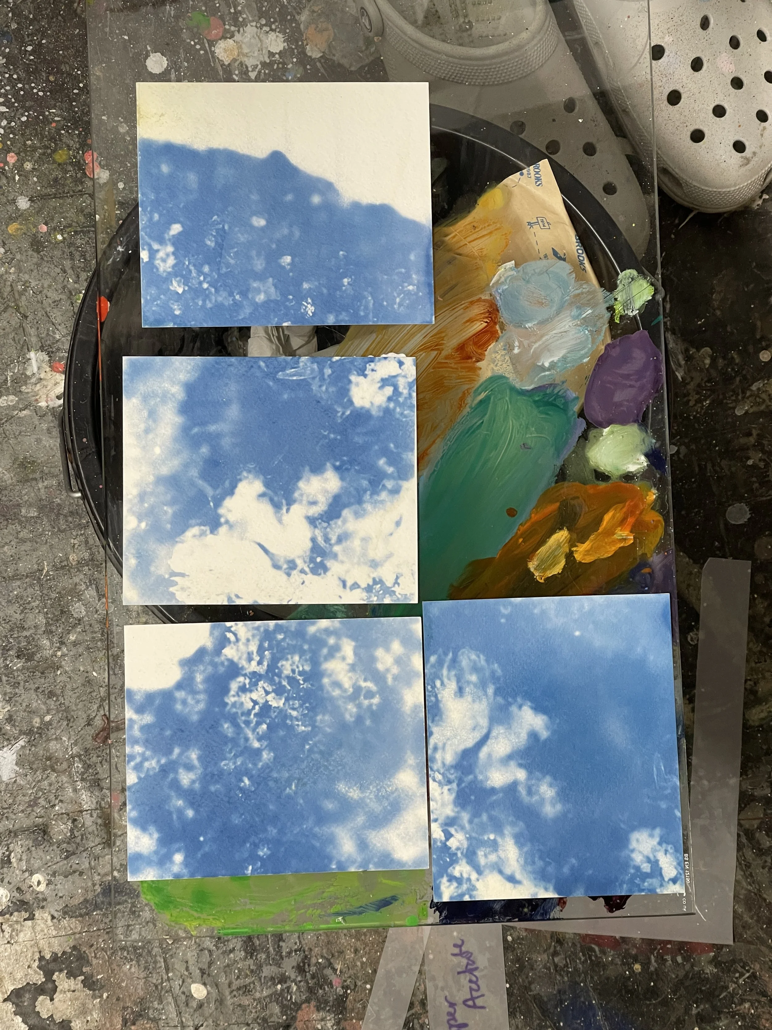 These pigments will then be used to work into the micrograph cyanotypes to make more macro representational works, using the micro as a layer, adding texture and forms to work into. I always like this idea of pulling figurative elements from the micrographs, then forming more narrative as I paint, drawing from my own worldly experience.